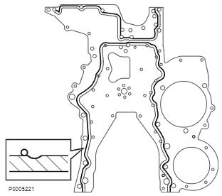 1 安裝前最多20 分鐘內(nèi),在正時盤上的槽外側(cè)涂抹一層 2 mm (0.08")厚的密封膠。