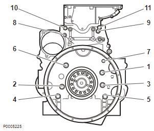 20 插入新的曲軸密封件;參見曲軸密封,更換(后部) 214 頁。安裝飛輪。檢查飛輪是否變形;參見飛輪,指示 202 頁。