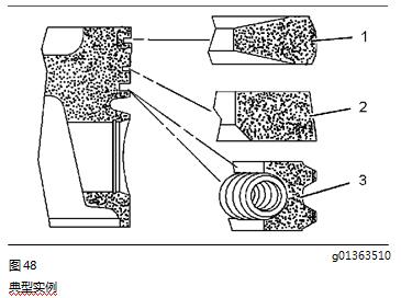 中間壓縮環(huán)與活塞環(huán)槽之間的間隙 0.065 至 0.110 mm (0.0026 至 0.0043 in)